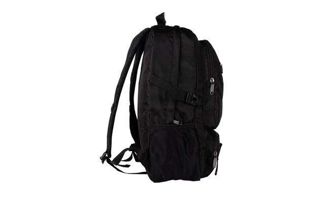 Bolsos laterais e frontais, divisórias internas