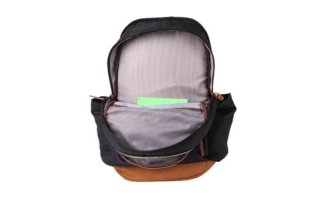 Bolsos laterais e frontais, divisórias internas